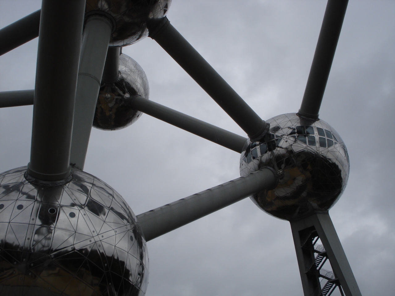 El Atomium es una impresionante construcción de más de 100 m de altura formada por nueve esferas de 18 m de diámetro que representan un átomo de hierro ampliado unas 165 mil millones de veces. Hay que ver lo pequeño que debe ser... Fue construido en las cercanías de Bruselas con motivo de la Expo de 1958.